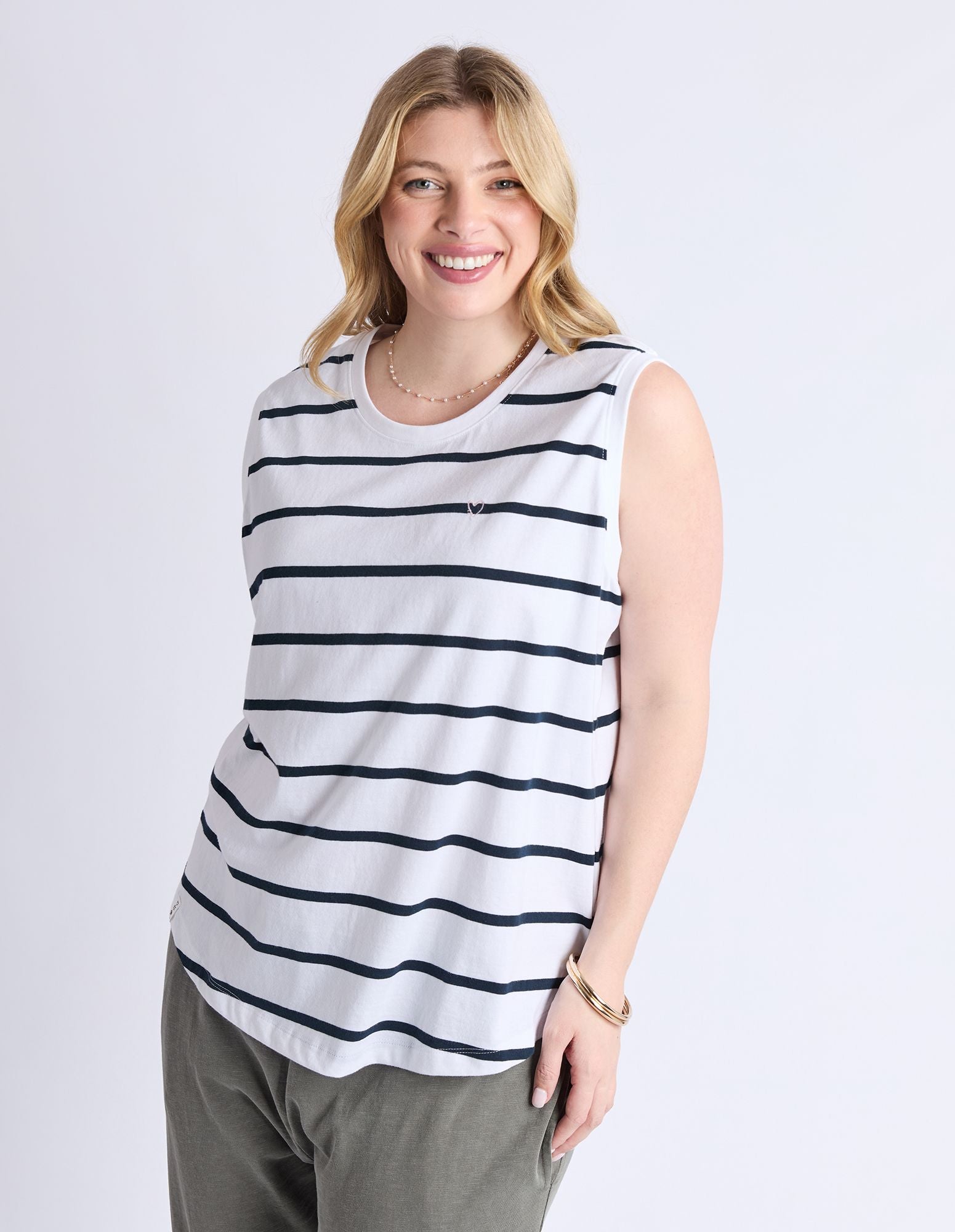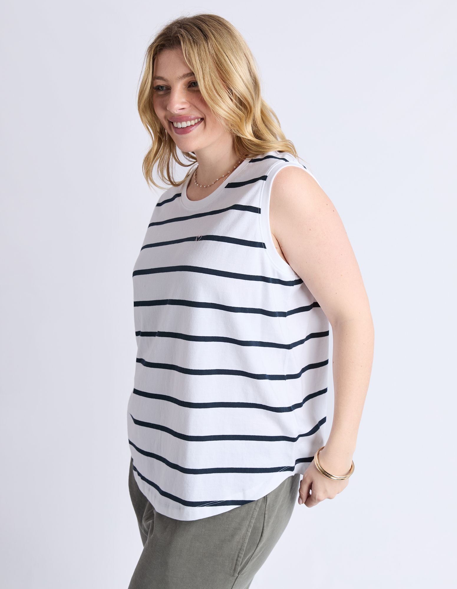 HALLI TANK STRIPE - WHITE/NAVY STRIPE