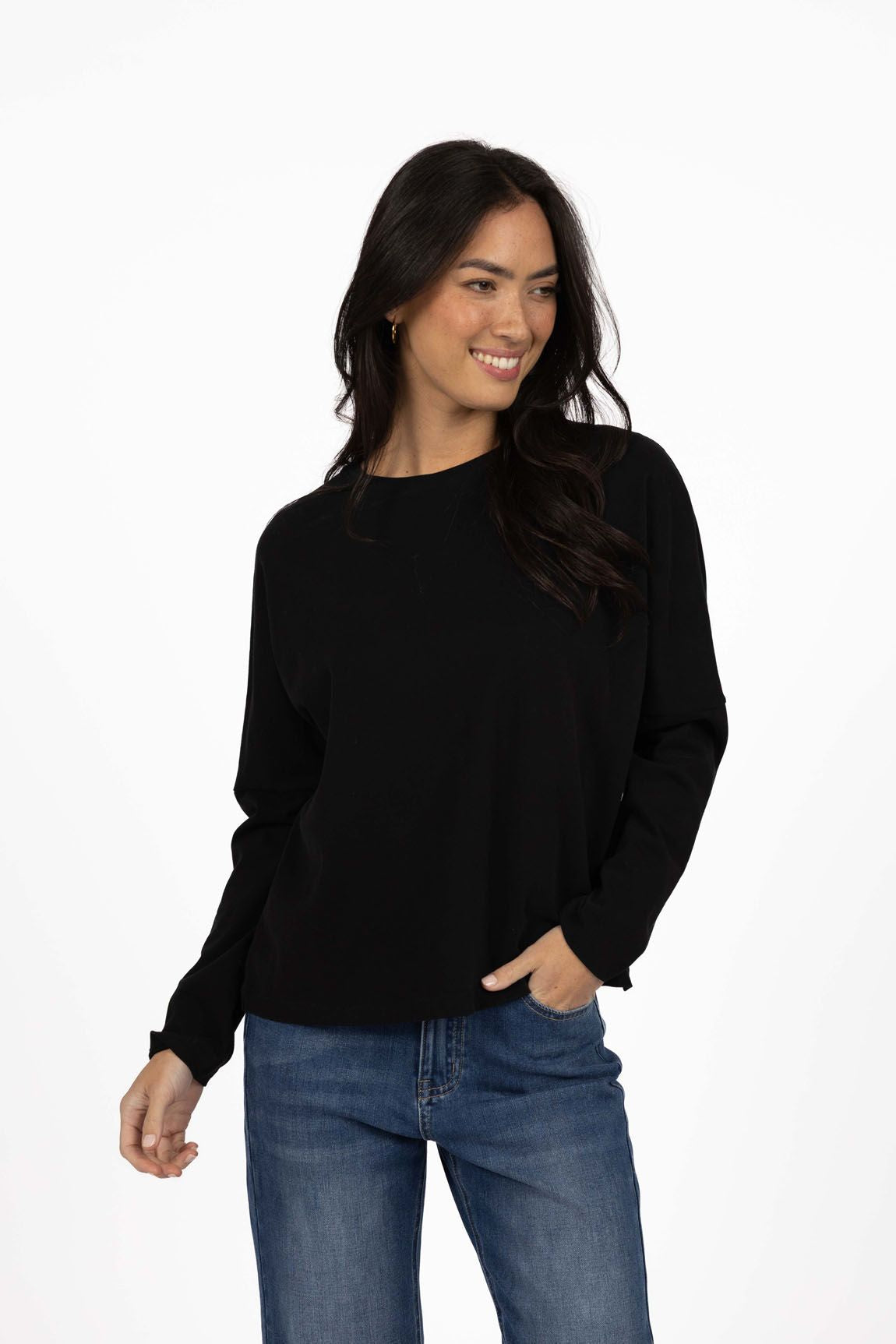 The Wildfire Long Sleeve Tee featuring in Black with a round neckline and slight drop shoulder in a beautiful buttery-soft cotton makes the perfect comfy, long sleeve t-shirt in an oversized relaxed fit.